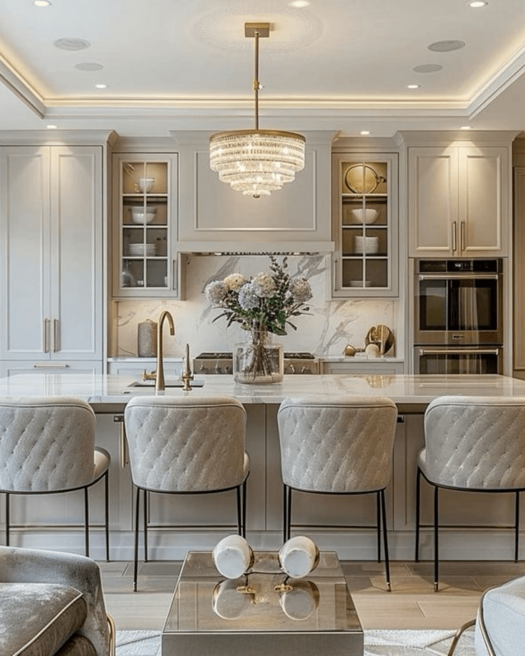 Cabinetry, flooring, stone countertops, and architectural features like molding or millwork should have staying power. These elements also form the backbone of your design. Not only countertops and flooring, but also paint colors, appliances, and large plumbing fixtures in timeless styles allow for more flexibility in the future.